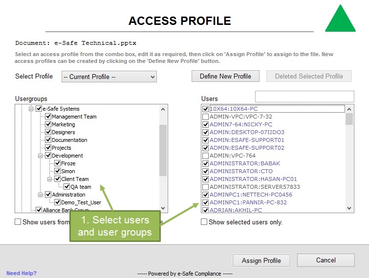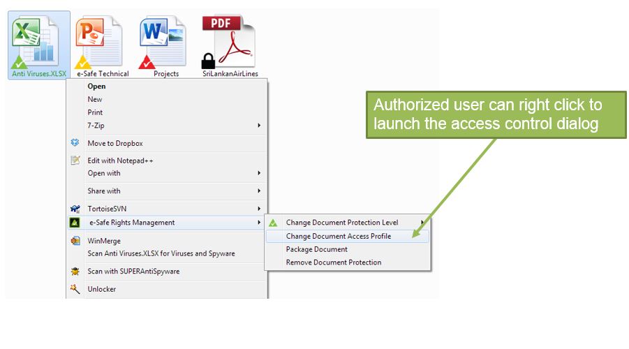 The insider threat cannot be eliminated unless access to sensitive information is limited. This is achieved by document rights management. This module allows information owners to define who can have access to a document by using mouse right-click options.