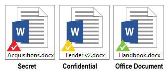 e-Safe Compliance automates this process by providing information owners with the ability to assign the correct document sensitivity level using mouse right-click options. Documents can be categorised into three levels, which are depicted by their triangle overlay icon colour.