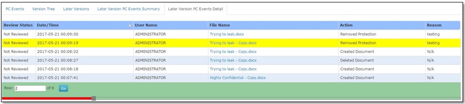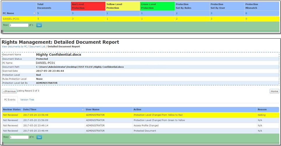 Protected documents are tracked throughout their lifecycle from creation to deletion. Reports are generated, information owners can access the reports and can also verify the users for their activities related to these documents.