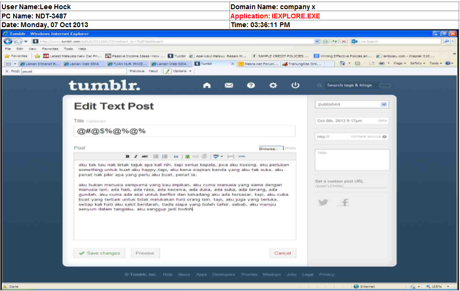• Employee misusing his Facebook privilege to apply for job rather then doing work